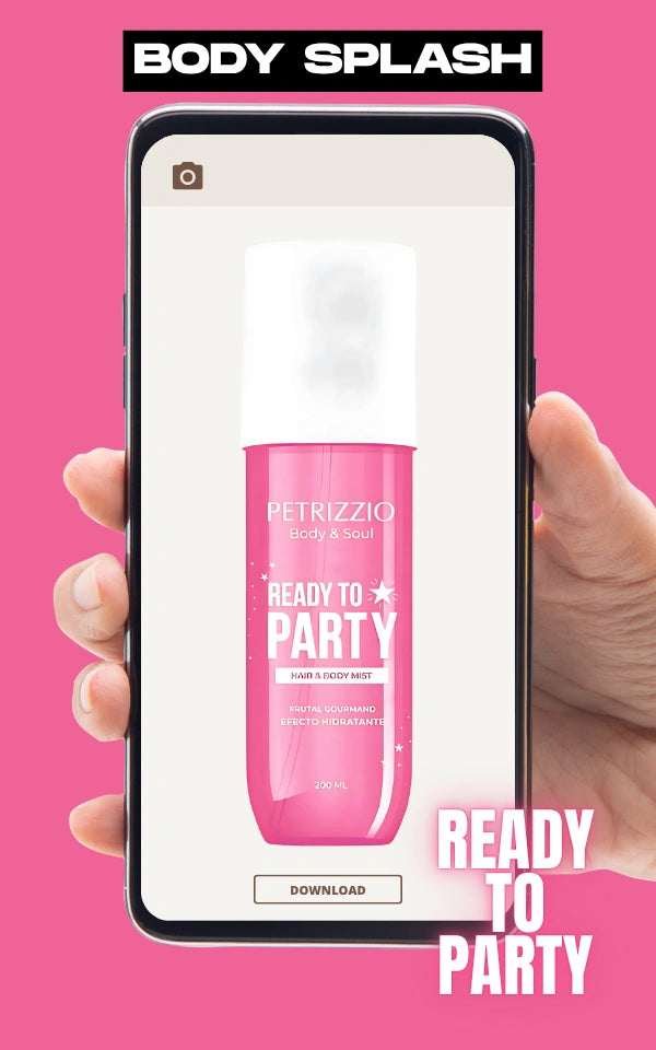 Petrizzio Ready to Party Hair & Body Mist 200 ml: fragancia frutal con toques de coco, sándalo y vainilla. Hidrata y suaviza piel y cabello para que brilles de noche.