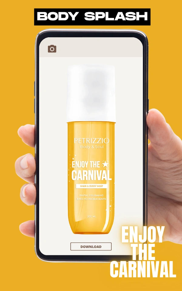 Petrizzio Enjoy The Carnival Hair & Body Mist 200 ml: fragancia frutal azucarada con manzana, coco, jazmín y vainilla. Hidrata piel y cabello con un aroma dulce y lleno de energía.