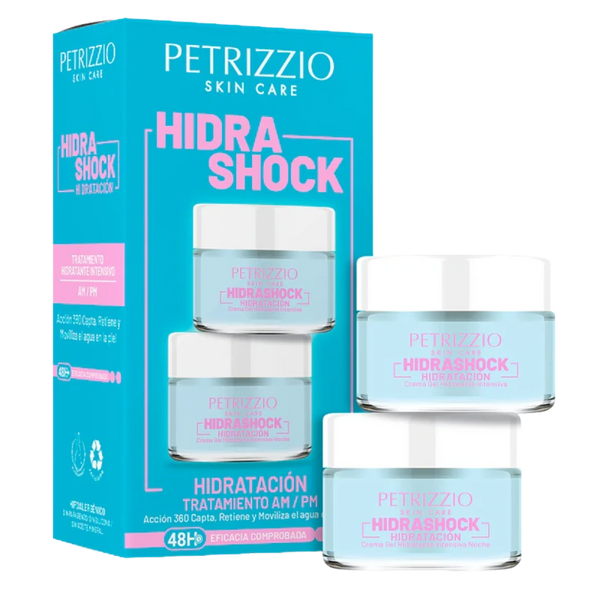 La línea Petrizzio Hidra Shock está diseñada para brindar a tu piel el balance perfecto entre hidratación profunda y un acabado luminoso y saludable. Con fórmulas en textura crema gel de rápida absorción, estas cremas faciales ofrecen un tratamiento completo AM/PM que potencia la frescura y vitalidad de tu rostro.