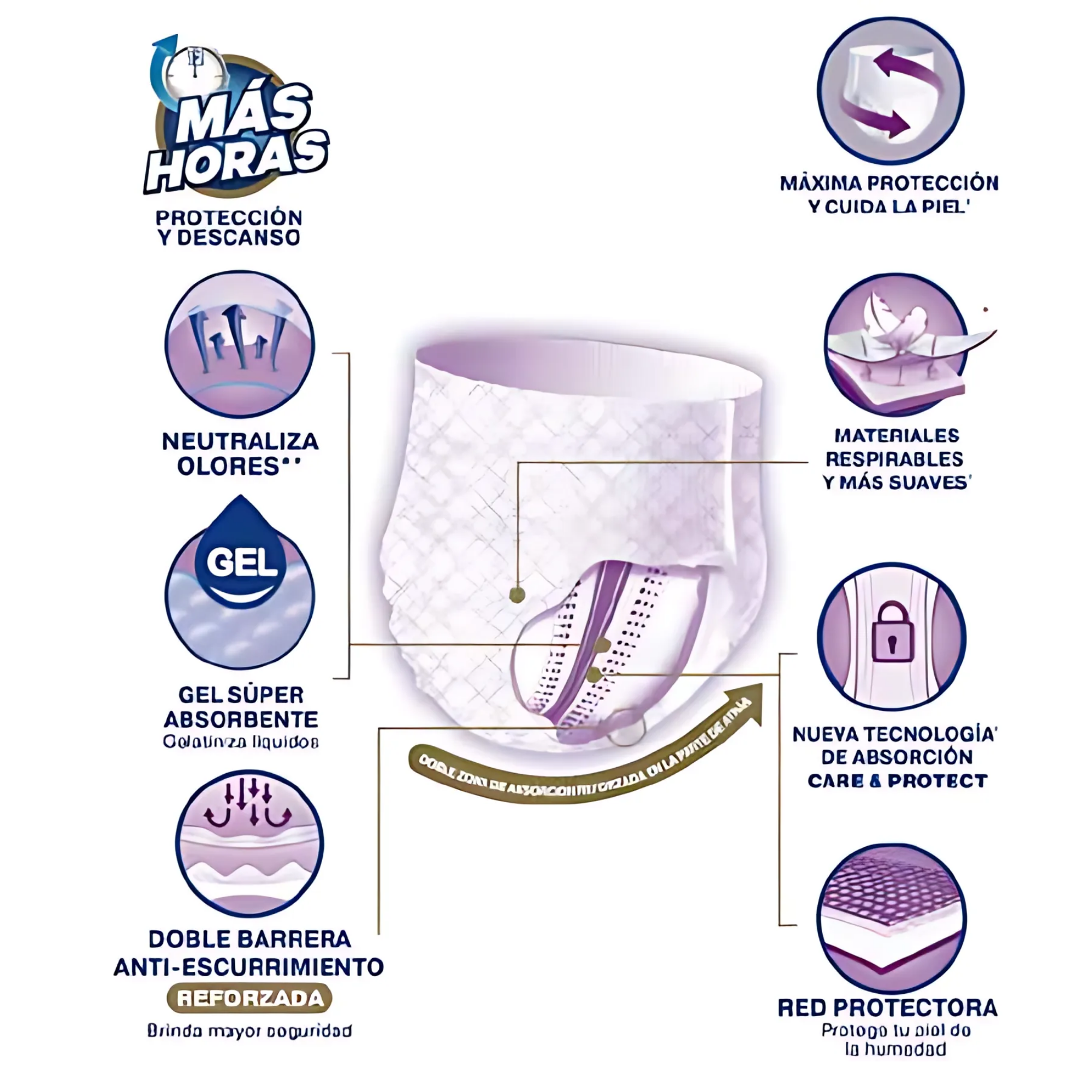 -Elaborada con un gel súper absorbente para brindar la máxima absorción y protección de la línea Tena Pants Nocturno