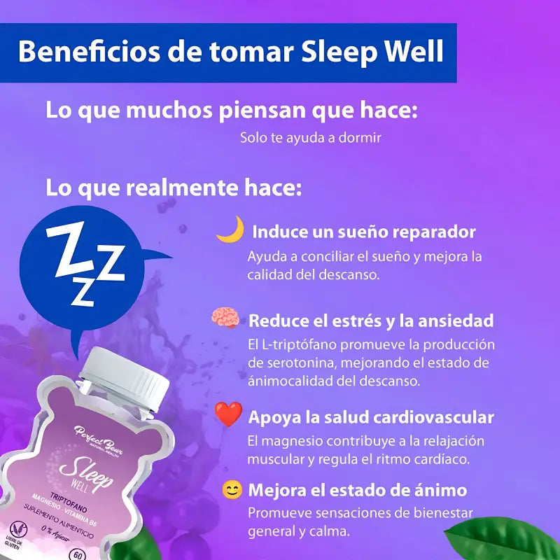 ¿Te cuesta conciliar el sueño? Presentamos Sleep Well, tu solución natural para un descanso reparador. Dile adiós al insomnio y hola a noches de descanso profundo. Despierta cada día con una sonrisa y la vitalidad para enfrentar cualquier desafío. Tu cuerpo y mente te lo agradecerán.